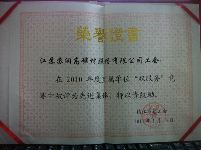 祝賀我公司工會在2010年度直屬單位“雙服務”競賽中被評為先進集體光榮稱號