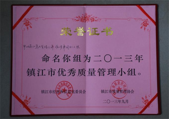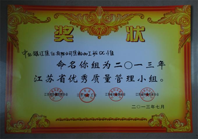 我公司焦粉加工班QC等獲2013年江蘇及鎮(zhèn)江市優(yōu)秀質(zhì)量管理小組稱號(hào)