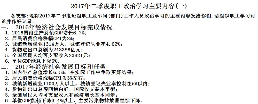 2017年二季度職工政治學習主要內容