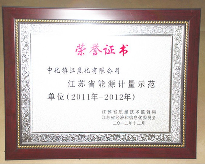 中化鎮江焦化有限公司被評為“江蘇省能源計量示范單位”